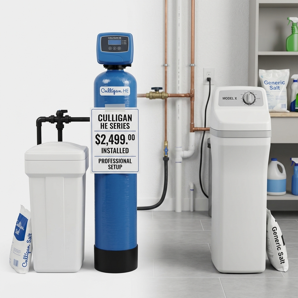 Culligan ne publie pas ses tarifs en ligne — un devis personnalisé est nécessaire après une visite à domicile. Le prix dépend du modèle, de la capacité et des options choisies. Consultez le site Culligan pour demander un devis.